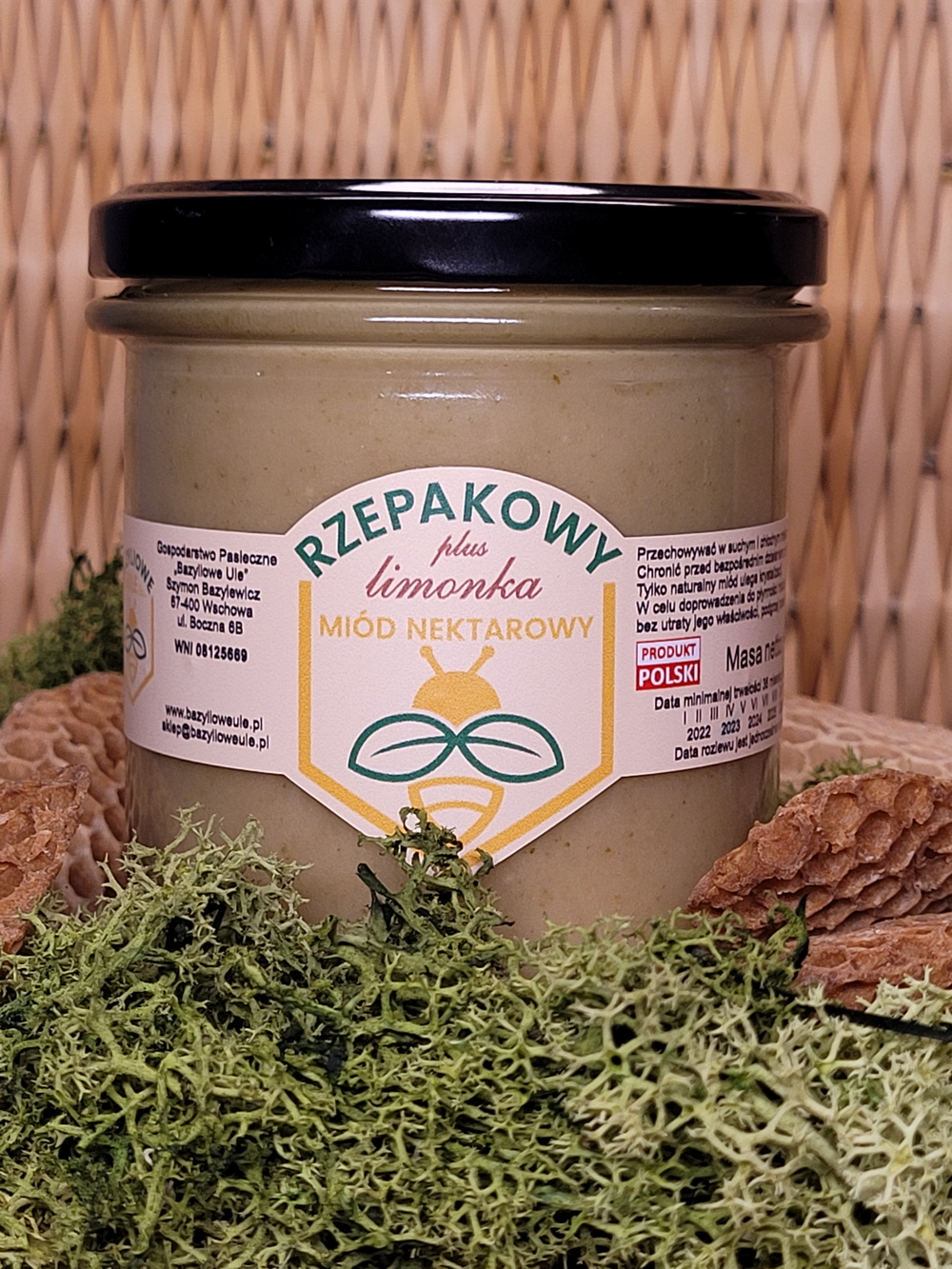 Miód rzepakowy z limonką to orzeźwiająca kombinacja łagodnego miodu z cytrusową nutą limonki, wspomagająca detoksykację organizmu i poprawiająca trawienie.